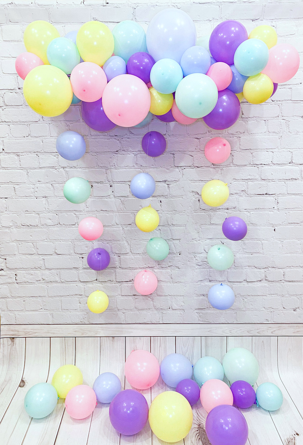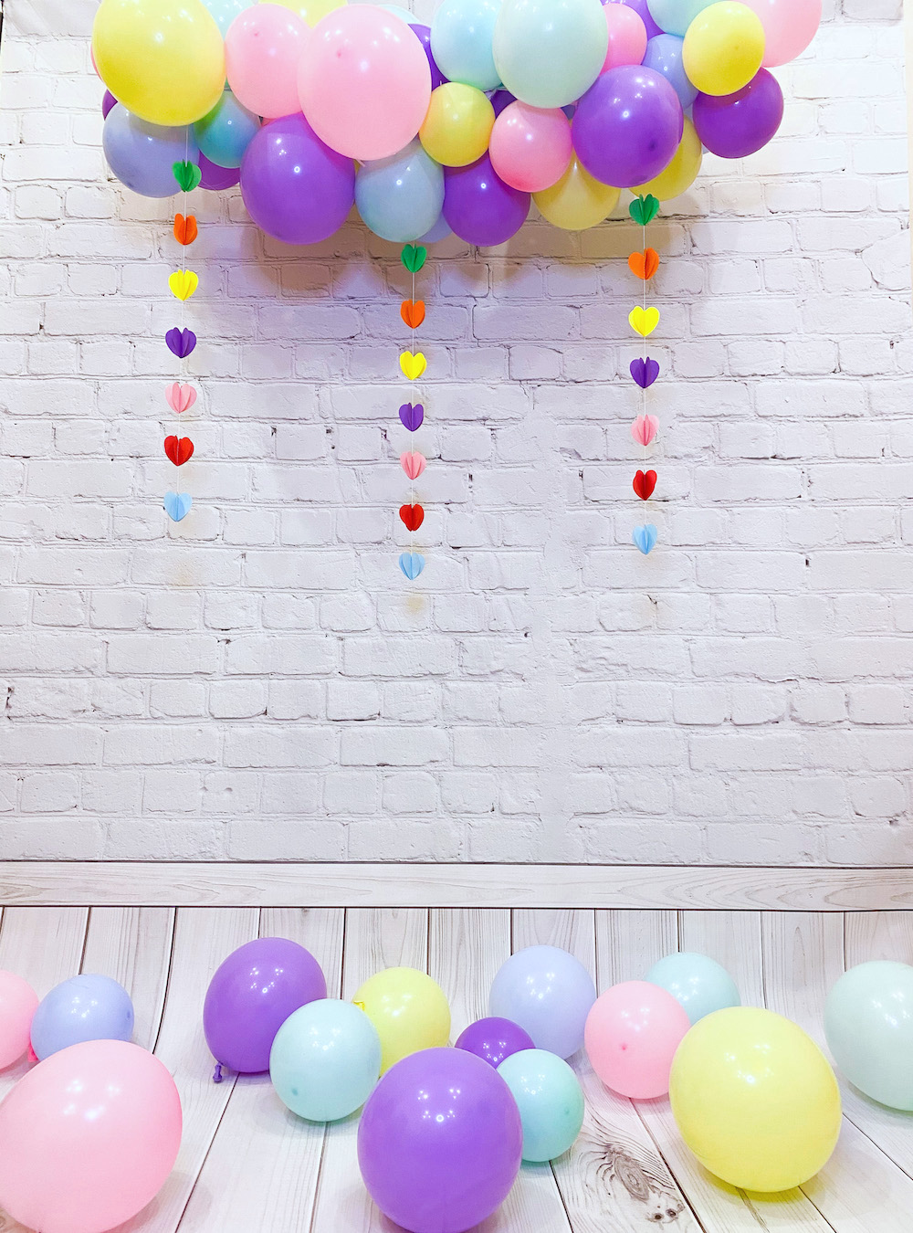 Гирлянда в виде разноцветного облачка с дождиком из шаров или сердец.